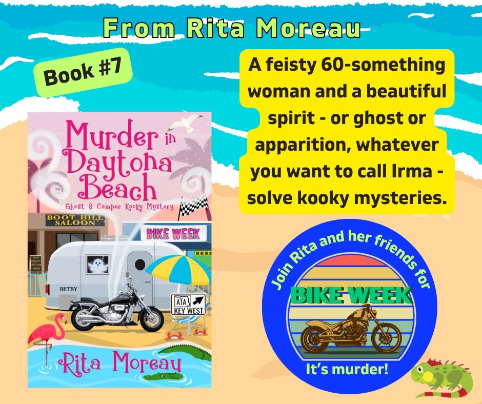 My name is Rita Moreau -- the author of two cozy mystery series: The Mary Catherine Mahoney series and the Ghost & Camper Kooky Mysteries.